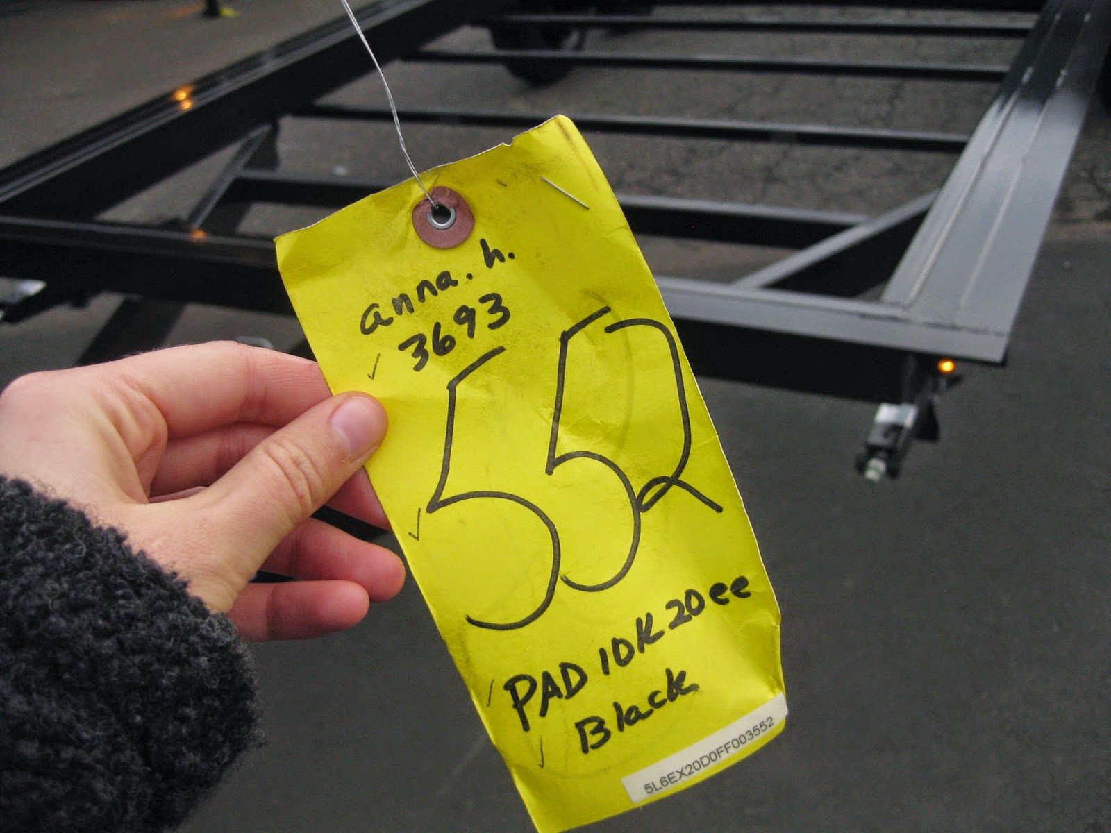 By the way, there were two other PAD Series tiny house trailers waiting to be picked up in front of the Iron Eagle shop when we got there, and Scott--the guy who came out and helped us--said there were two more inside and another down in the lower waiting area. Pretty brisk business! And Rob had told me that winter was their slower season!